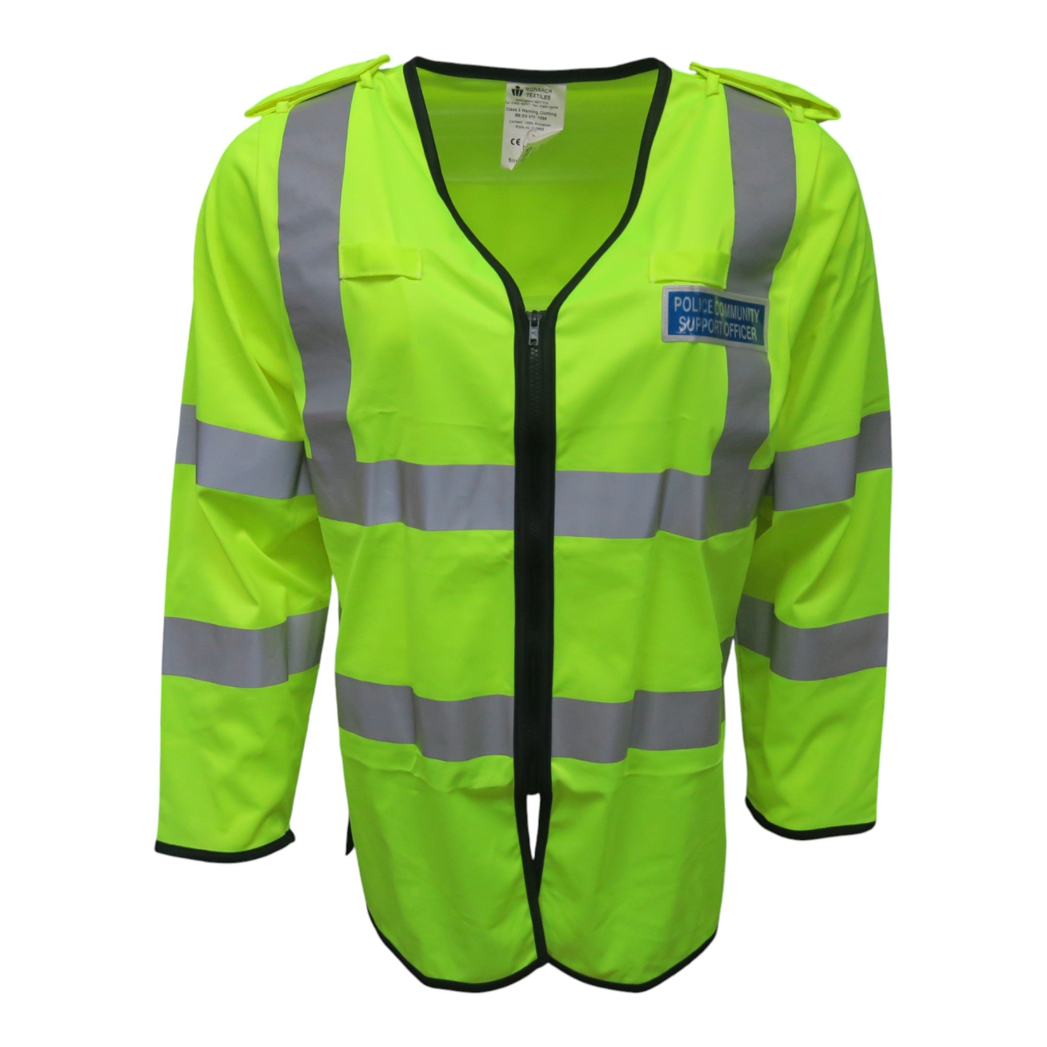 Grade 1Hi Vis Silver reflective stripsCentre zip fasteningLong sleeveSew on badges