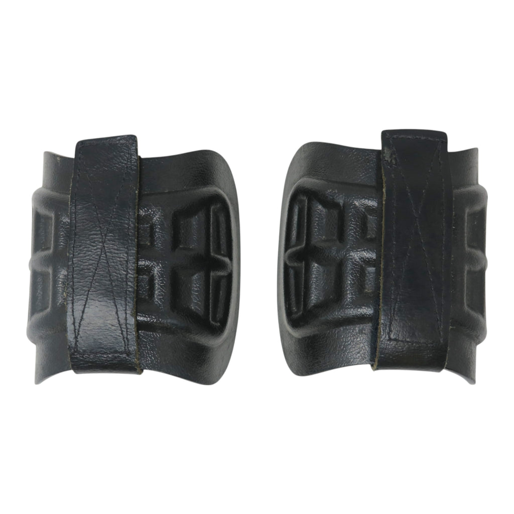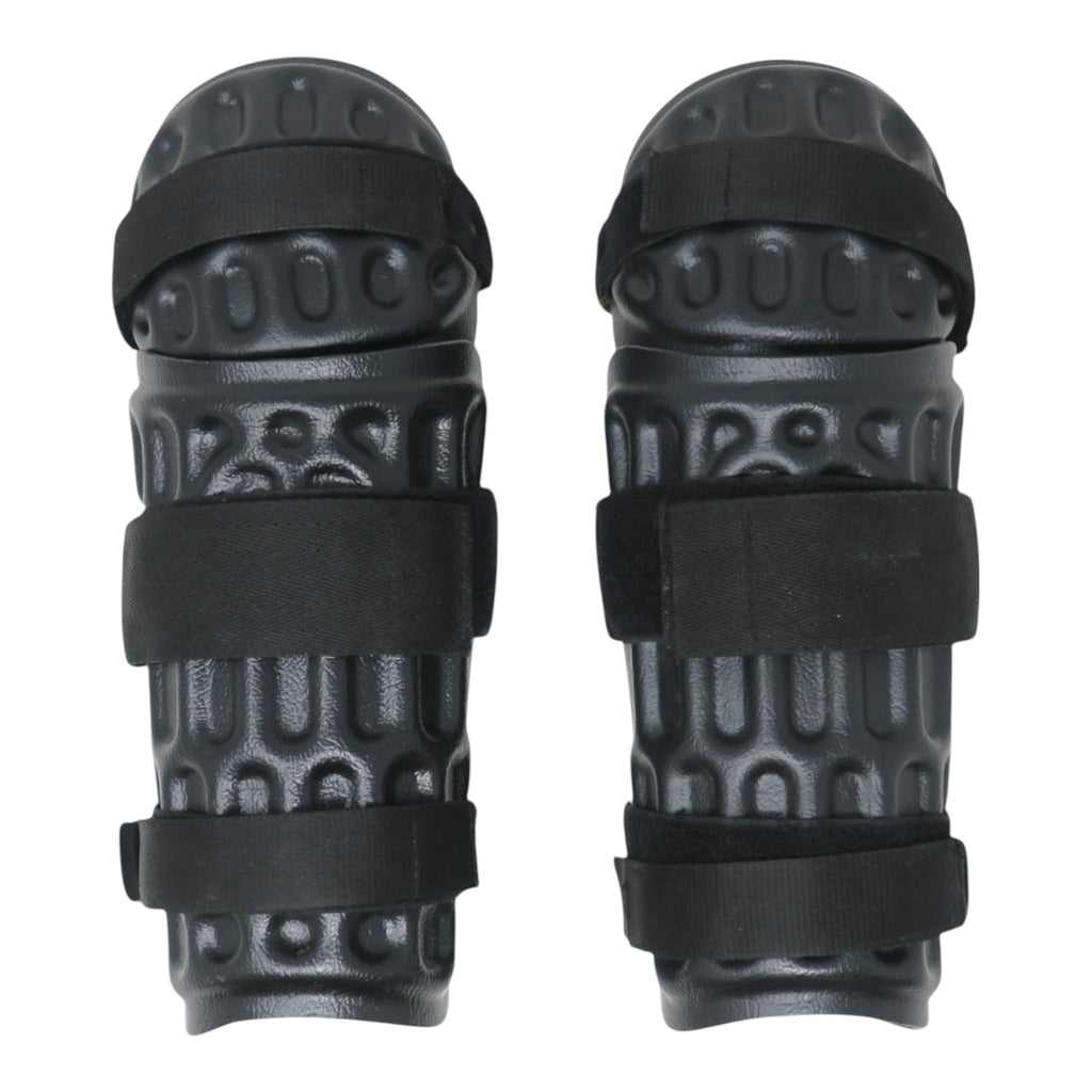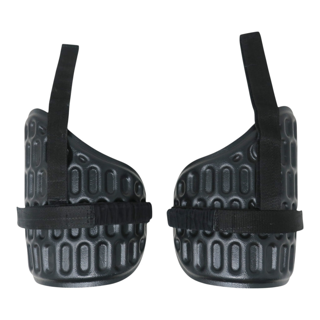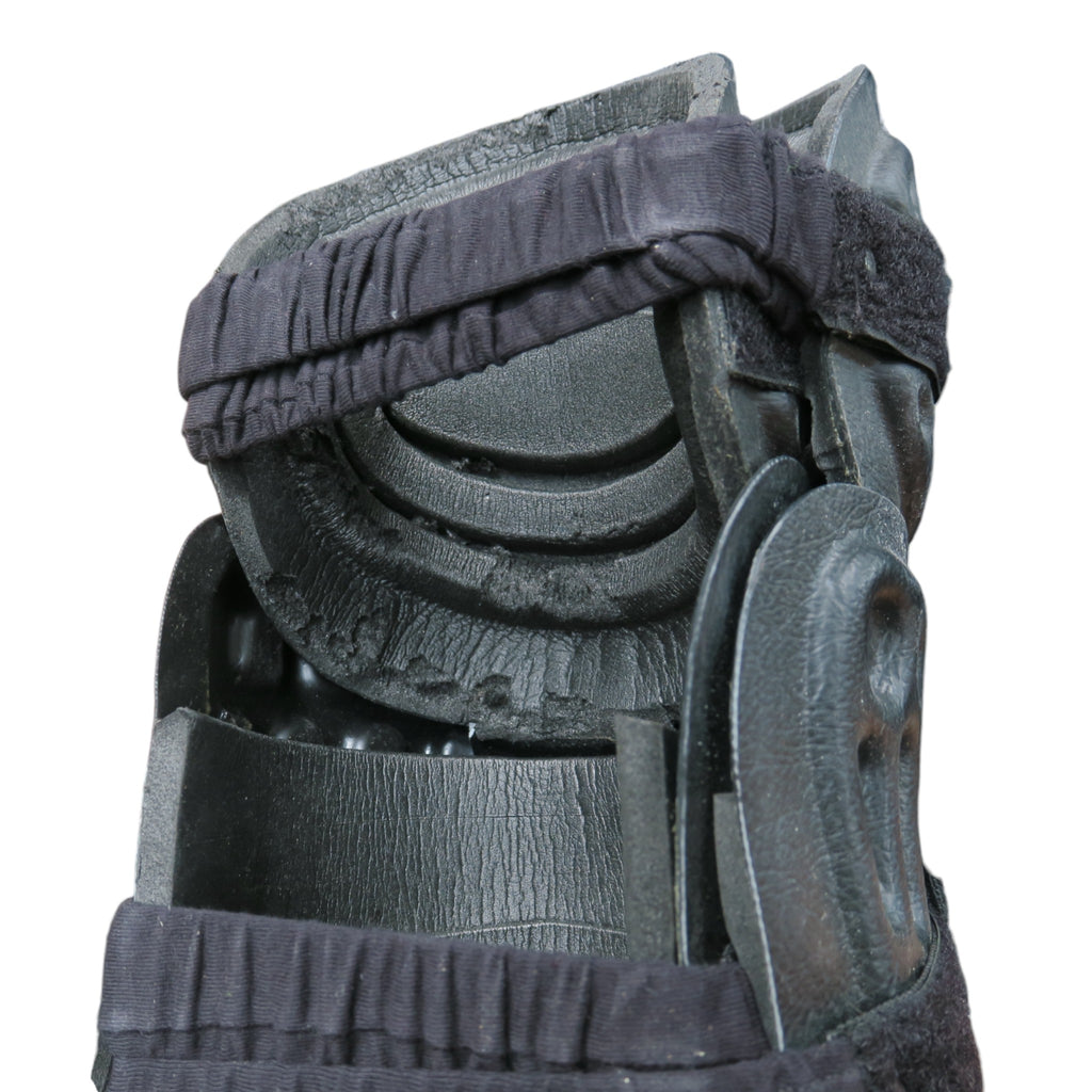 Black outer plasticFoam InnerHook & Loop elastic fasteningPlease note: These are used and therefore will show signs of use. Plastic may be scratched, Foam may have cuts or small chunks missing and elastic straps may have small tears.