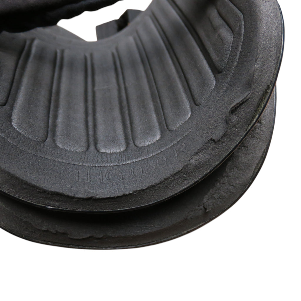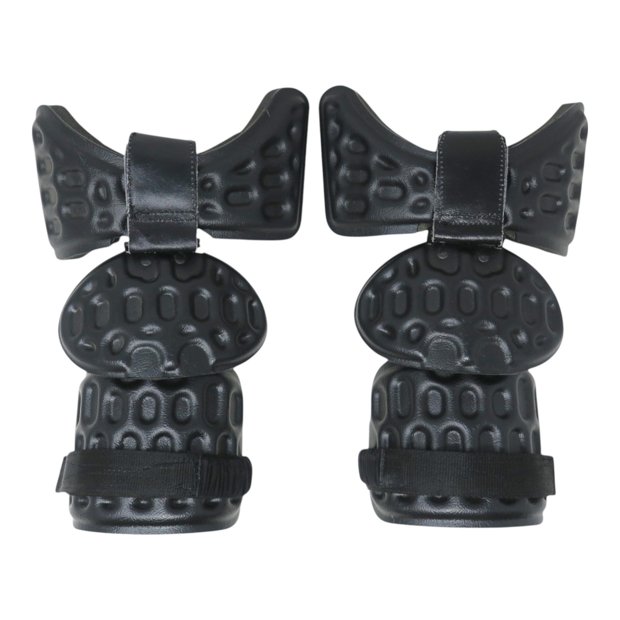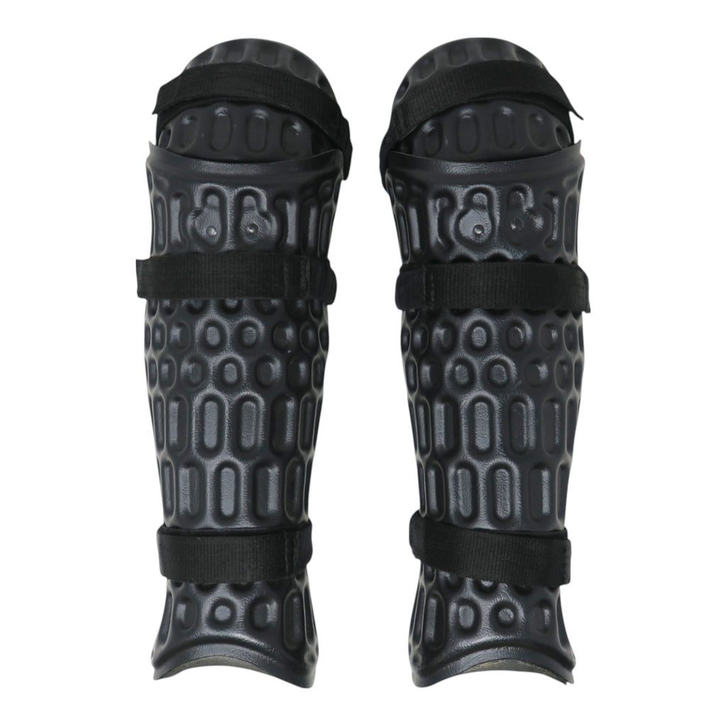 Black outer plasticFoam InnerHook & Loop elastic fasteningPlease note: These are used and therefore will show signs of use. Plastic may be scratched, Foam may have cuts or small chunks missing and elastic straps may have small tears.