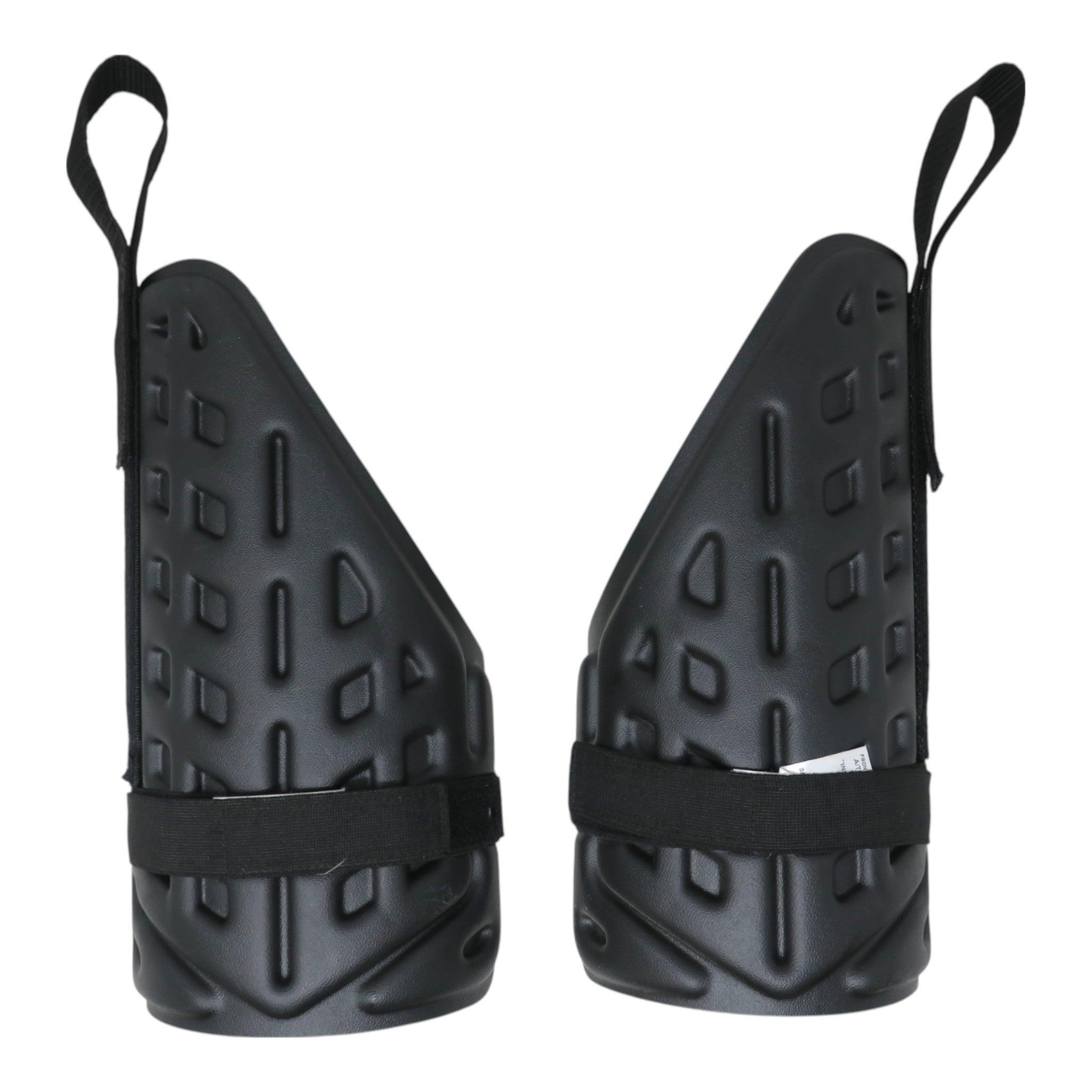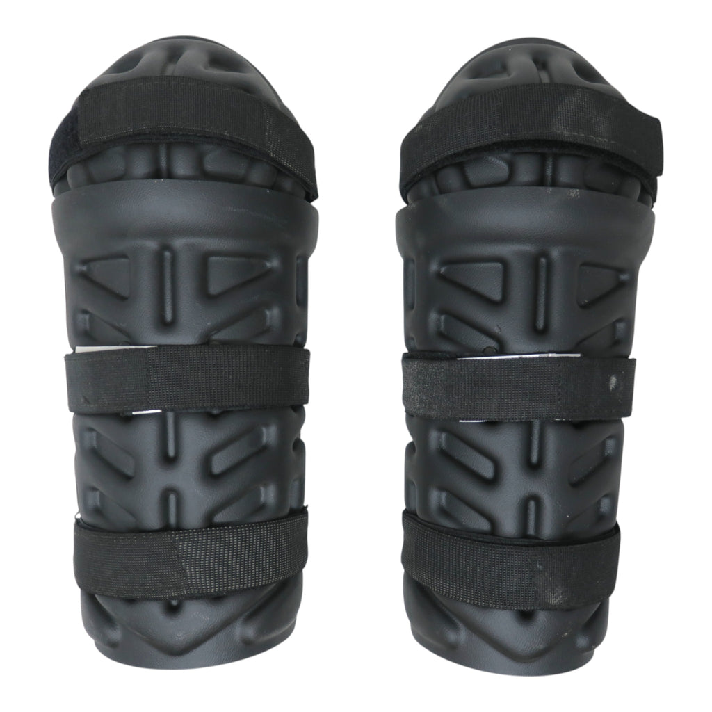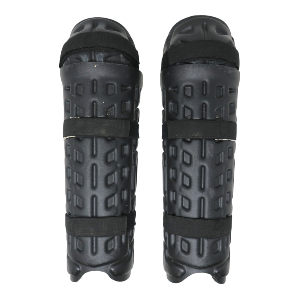 Black outer plasticFoam InnerHook & Loop elastic fasteningPlease note: These are used and therefore will show signs of use. Plastic may be scratched, Foam may have cuts or small chunks missing and elastic straps may have small tears.